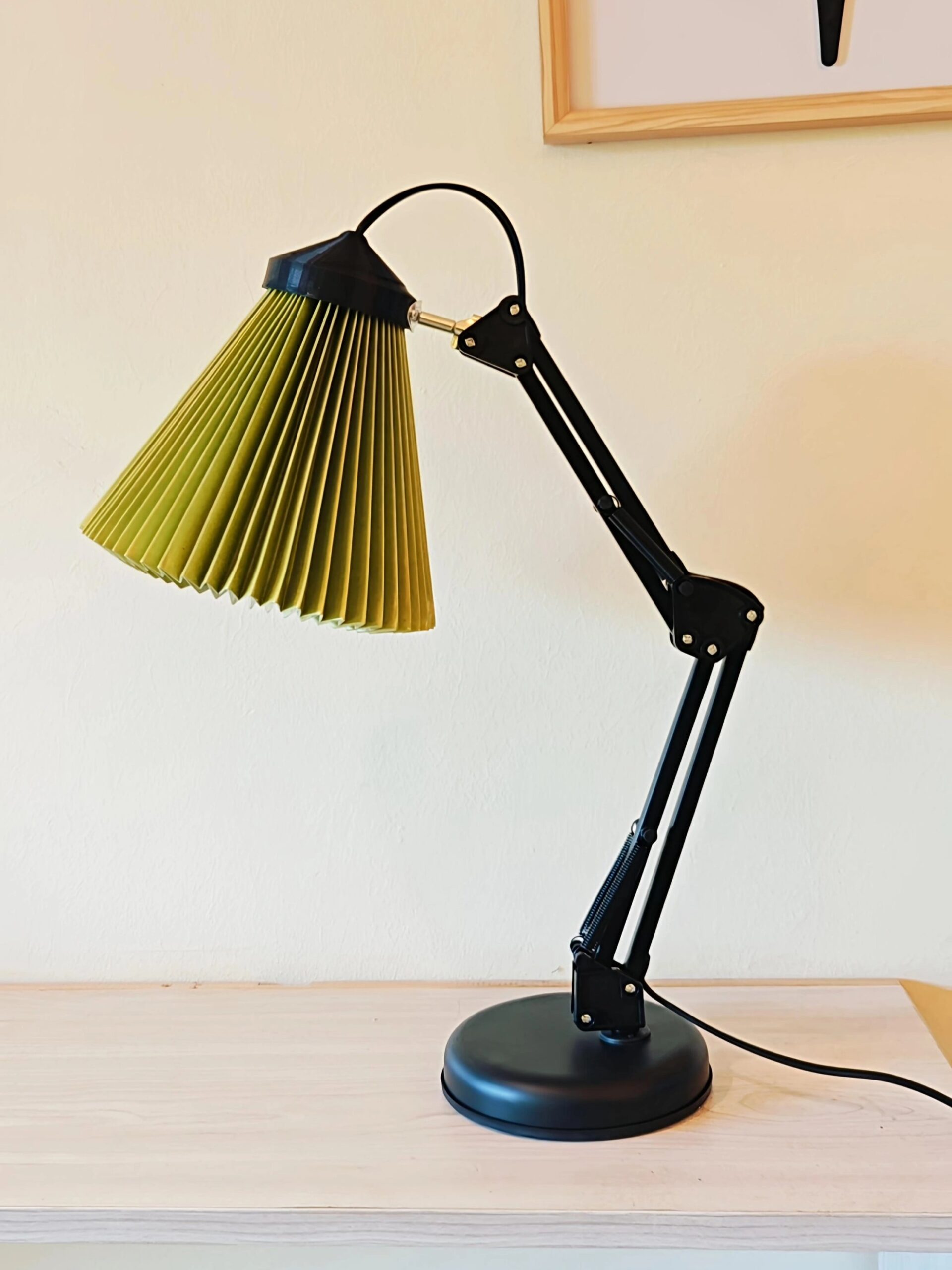 Handcrafted in Kenya, this piece pairs artistry with sustainability—featuring a carefully folded cone-shaped shade set atop an upcycled chips basket base, reimagined into a striking modern form. The contrast between the delicate paper folds and the structured metal frame gives it a refined yet playful character.