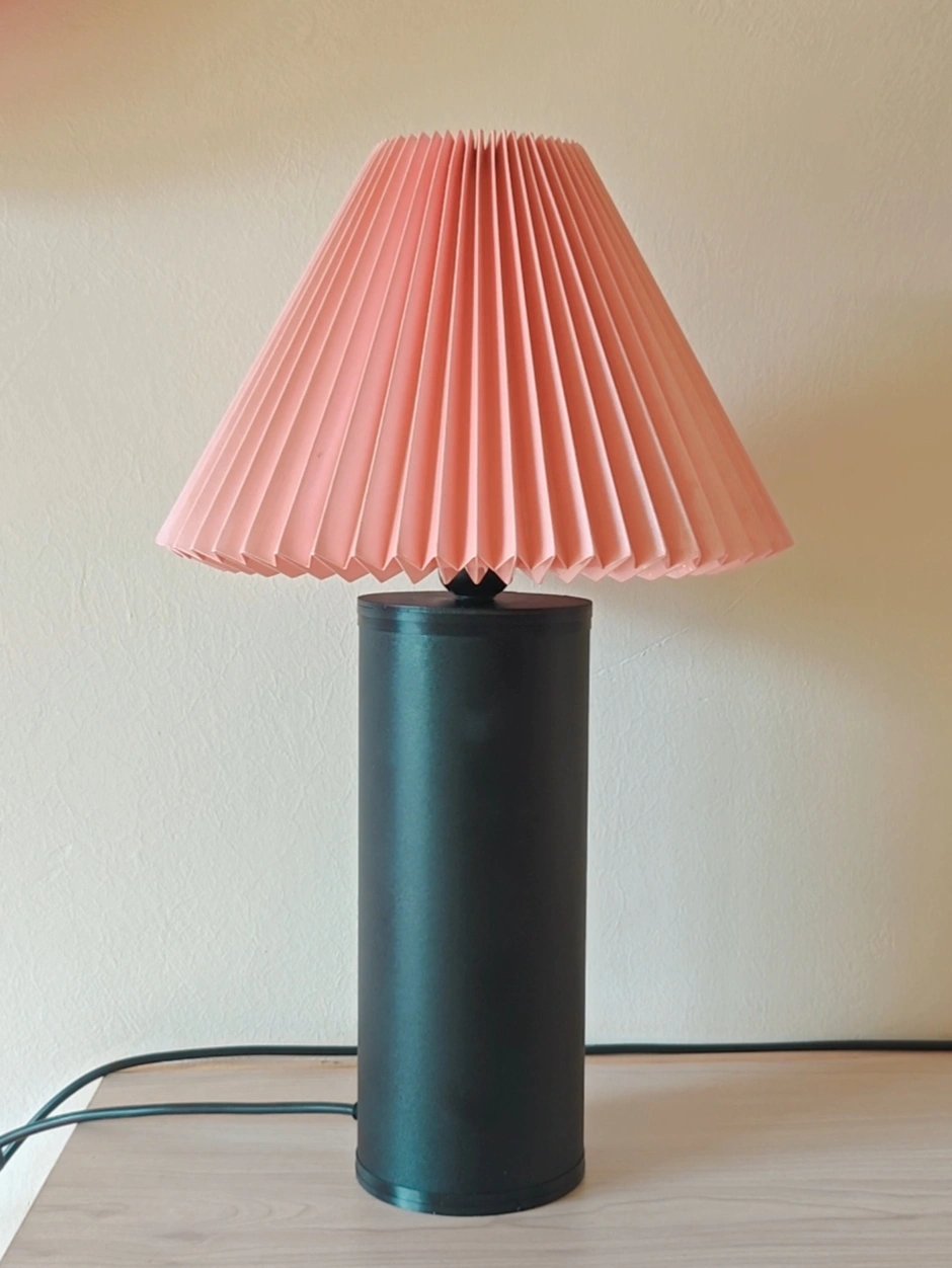 The lamp is crowned with the Chubu lampshade, a sleek tube-shaped origami shade that adds a touch of modern elegance to any room.
