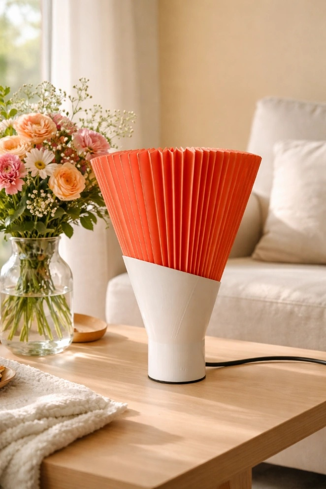 Its 3D-printed interlocking base, inspired by the clean lines of traditional fusuma panels, adds both elegance and stability. Compact yet sculptural, this lamp brings a warm, contemporary touch to any interior.
