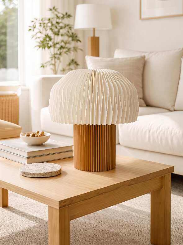 The Setto Lamp is defined by its finely hand-folded pleats and elegant, tapered silhouette. Its sculptural form creates visual interest even when unlit, while illumination reveals a soft, warm glow that gently diffuses through the folds, adding depth and calm to the space.